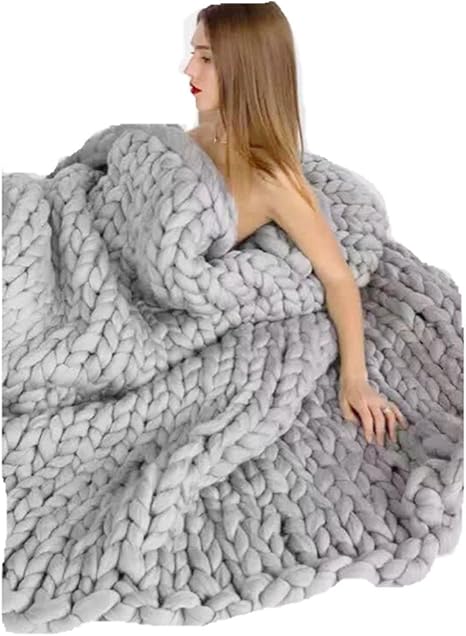 Super Chunky Knit Uberwurf Decke Grau Innen Weich Warm Wolle Cozy Extreme Hand Stricken Giant Design Home Decor Wolle Und Wollgemisch Grau 39 X 75 Inches Twin Size Bed Blanket Amazon De